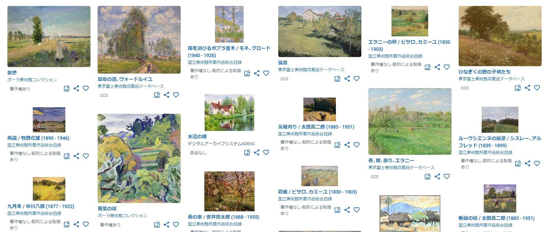 「田園を描いた印象派の絵画」をキーワードにして検索した例