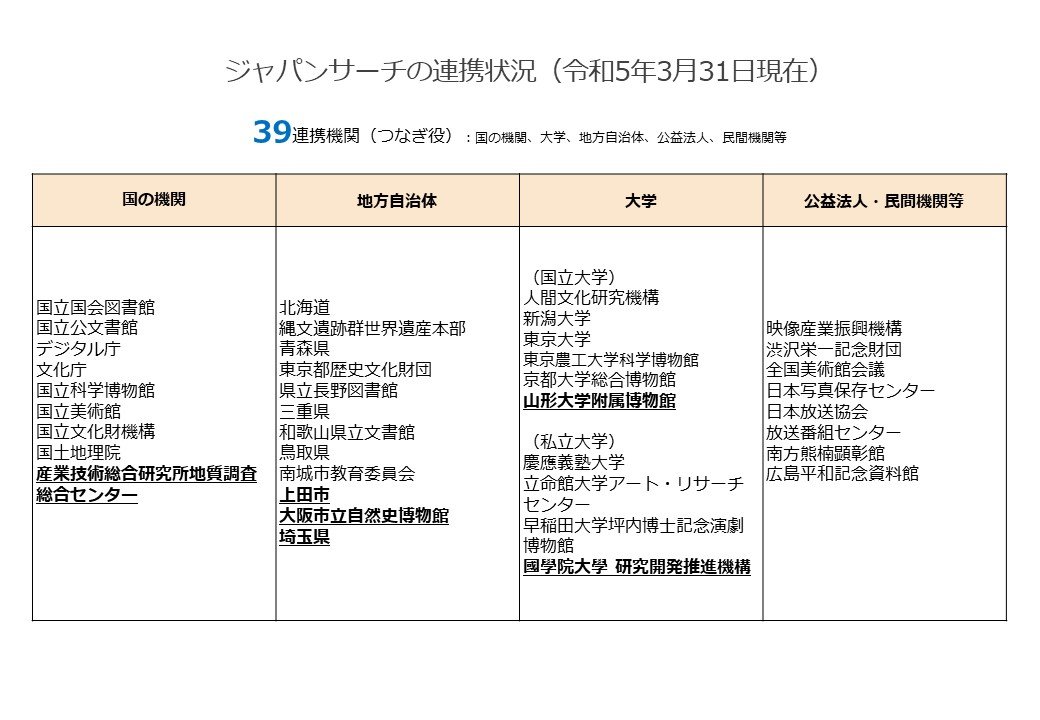 ジャパンサーチは、今後も、機能改善、地域アーカイブ等を含む更なる連携拡大、デジタルアーカイブの利活用推進に取り組んでまいります。