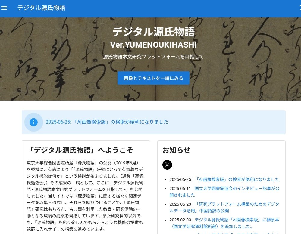 インターネット上で公開されている源氏物語の写本・版本画像と、原文・現代語訳等のテキストデータを、TEIガイドラインやIIIFなどの国際標準規格に準拠する形で相互にリンクし、自由に行き来できるデータベースを構築しています。実務者と研究者による協働を通じて、AIを用いたくずし字認識や画像検索など、様々な技術を組み合わせてデータの作成やシステムの開発を行っており、他のアーカイブ機関において参考になる部分が多い点を高く評価しました。
