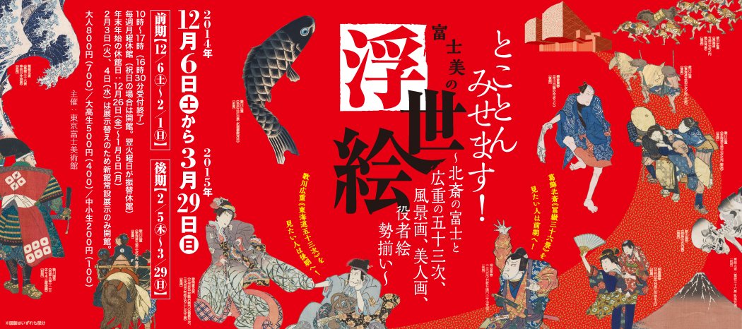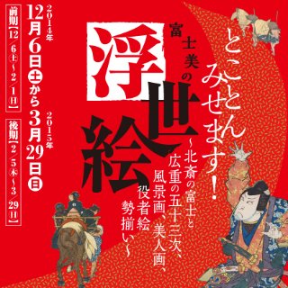東京富士美術館で2014年12月6日から2015年3月29日まで開催された企画展「とことんみせます!富士美の浮世絵 〜北斎の富士と広重の五十三次、風景画、美人画、役者絵勢揃い〜」展のオンライン展覧会です。