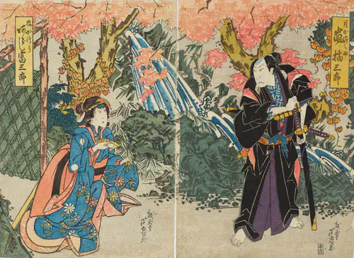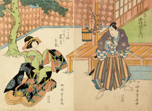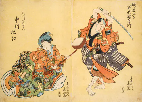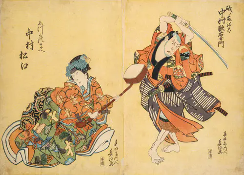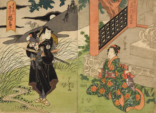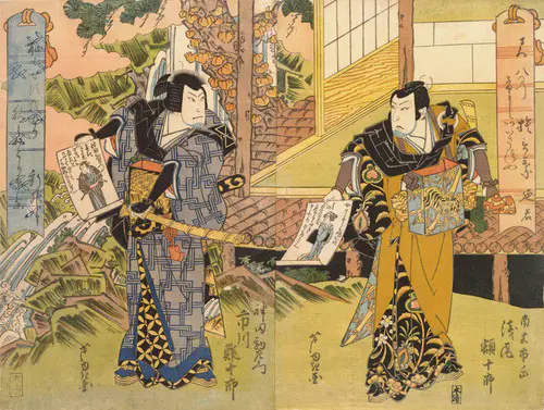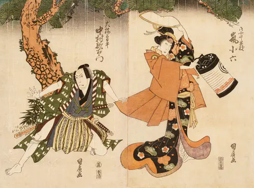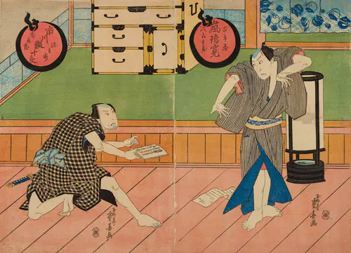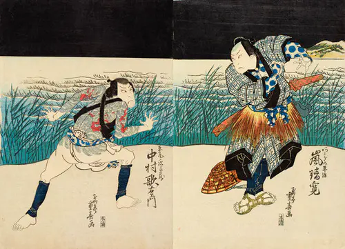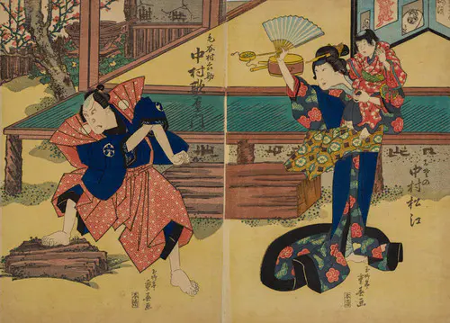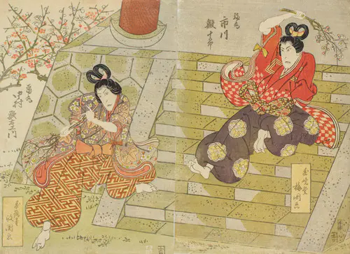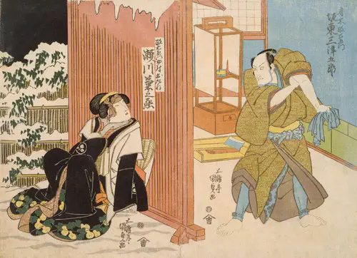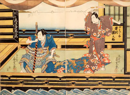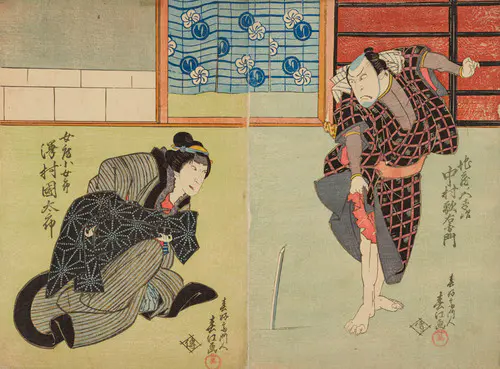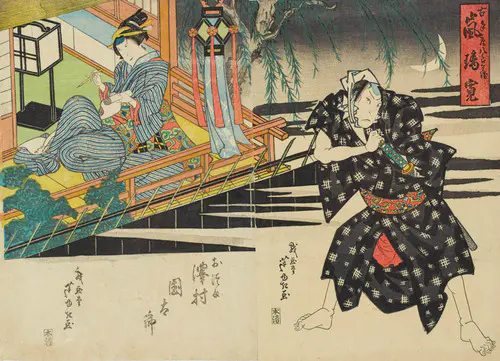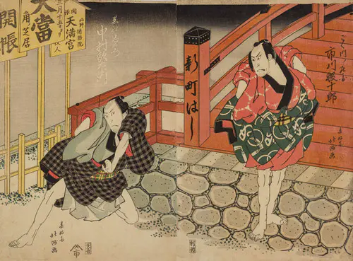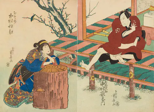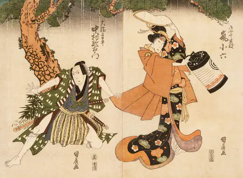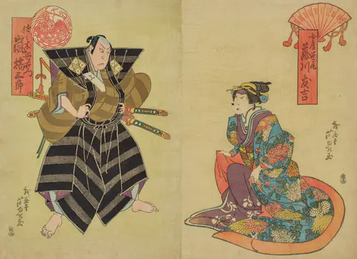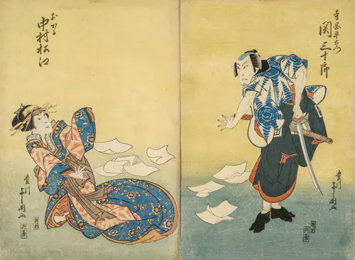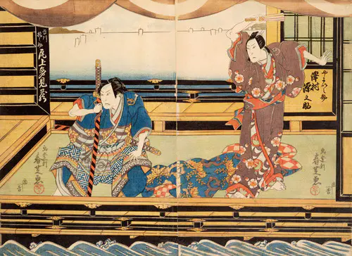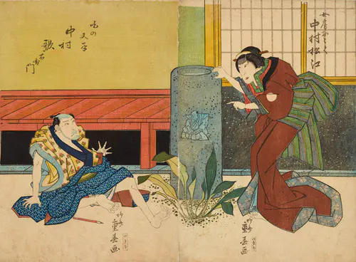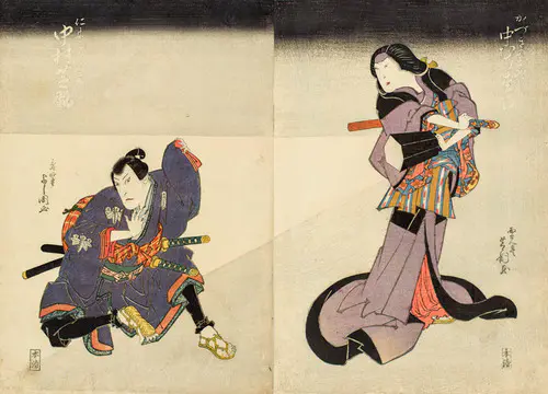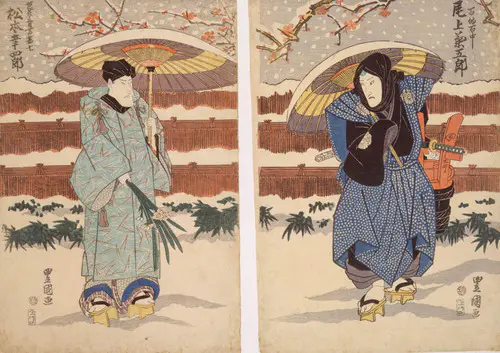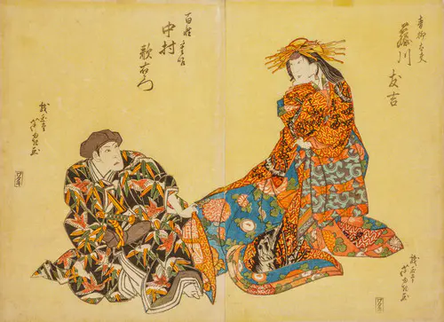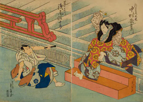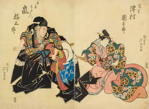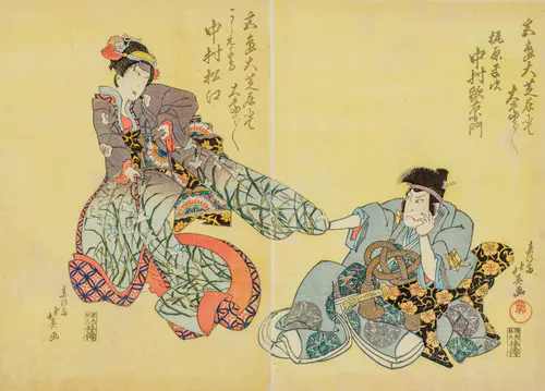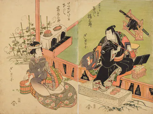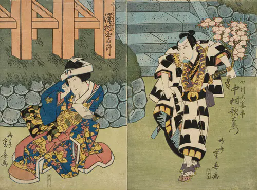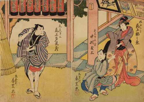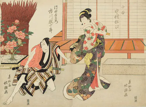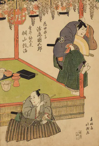 The Actors Matsumoto Koshiro V as Akahori Mizuemon and Iwai Kumesaburo as the Geisha Omatsu
