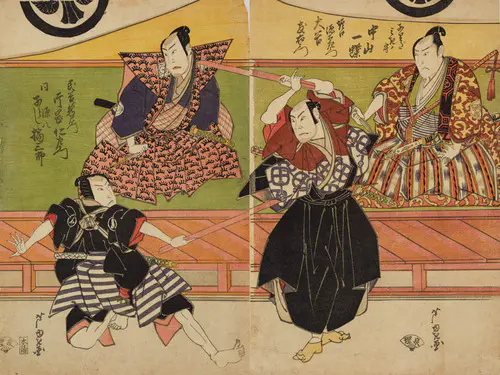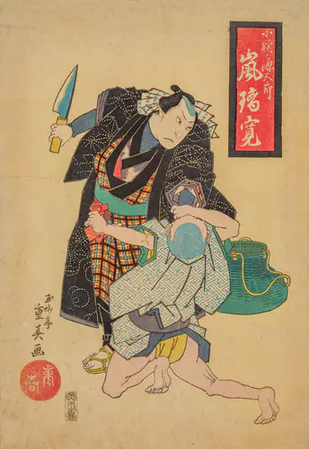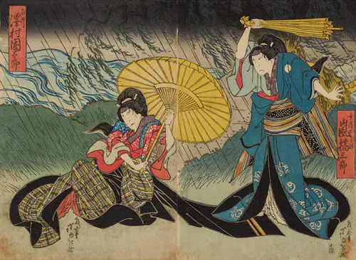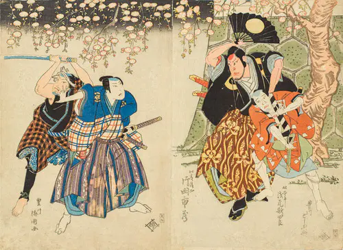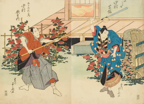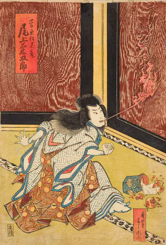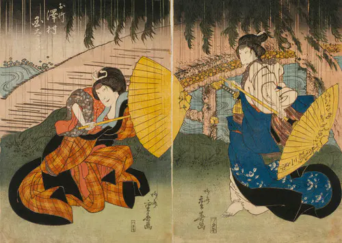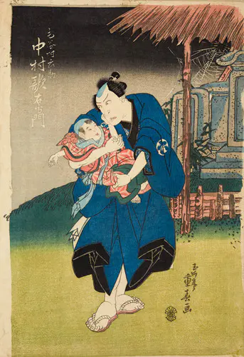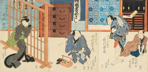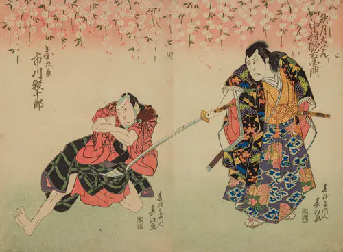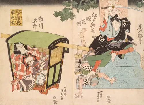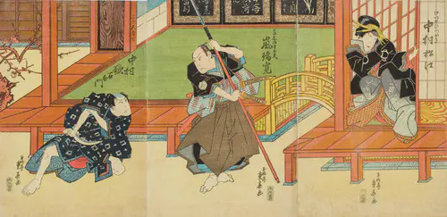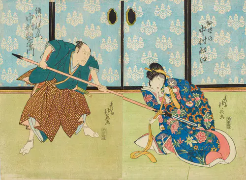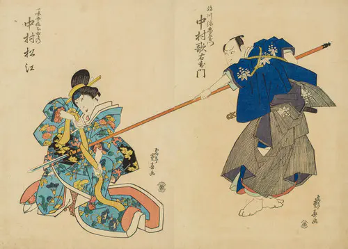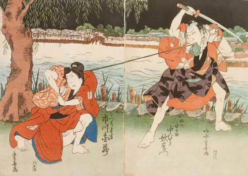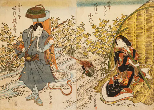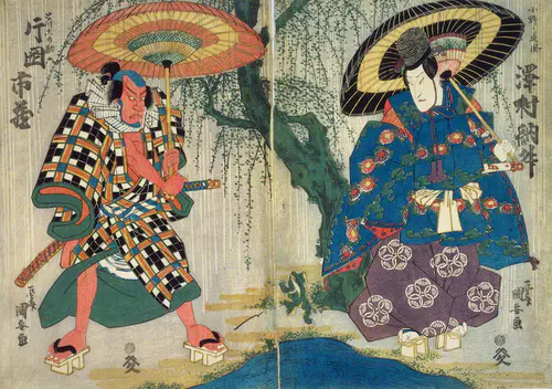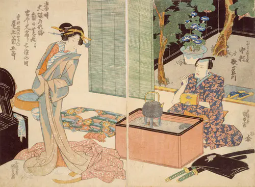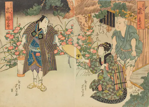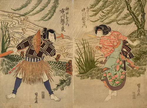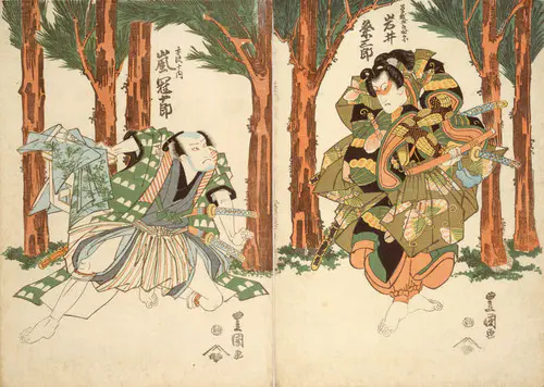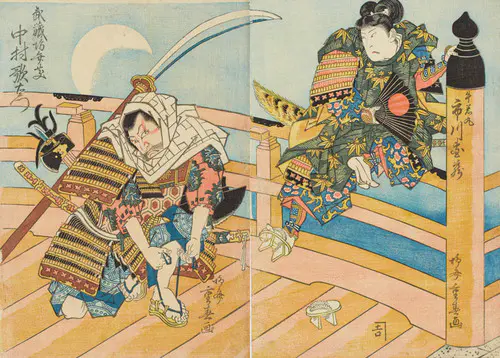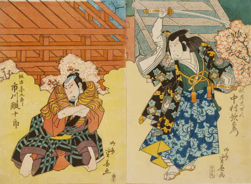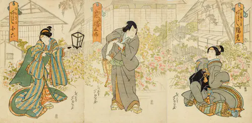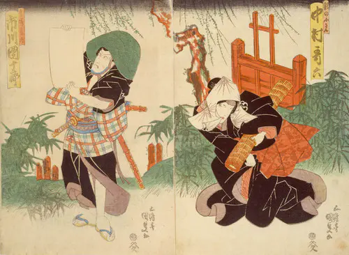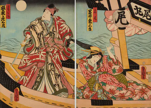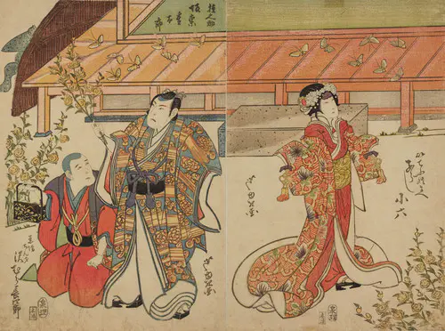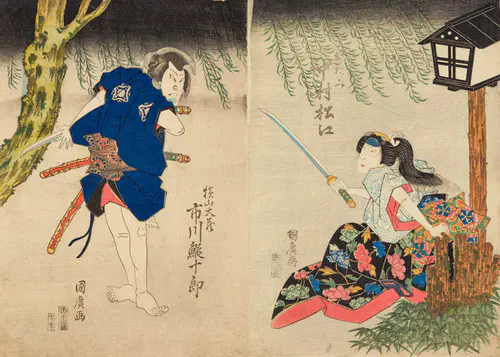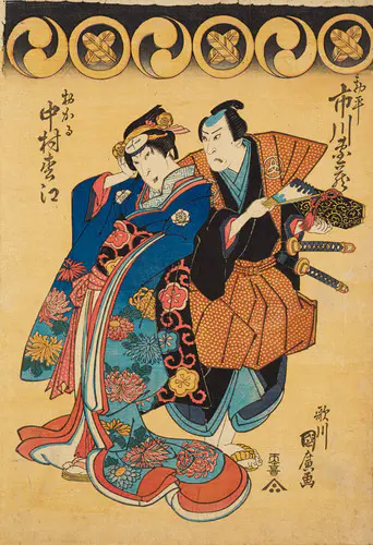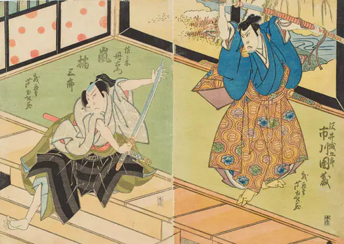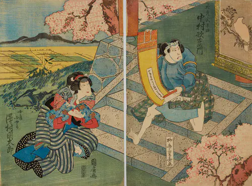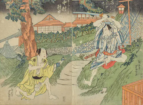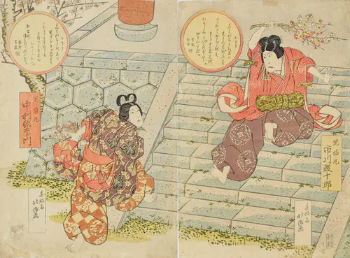 The Actors Matsumoto Koshiro V as Akahori Mizuemon and Iwai Kumesaburo as the Geisha Omatsu