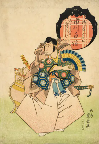 京都や大阪の上方では版本は非常に発達していたが、江戸のように挿絵が一枚絵の版画として独立していくことはなかった。絵画といえば肉筆画であり、版画を主とする変則的なあり方は、当時の上方の文化にはなじまなかったのである。上方で一枚摺の浮世絵が登場するのは、江戸の菱川師宣から約一世紀遅れてのことで、寛政年間(1789-1801)に流光斎如圭が役者絵を手がけたのに始まる。以後上方の浮世絵は、庶民のもっとも大きな楽しみとして人々に親しまれていた歌舞伎の役者絵を中心に展開していく。上方の役者絵は本職の絵師ではなく、北洲など歌舞伎の贔屓で絵心のあるものが手がけていたが、やがて浮世絵人気にともない、柳斎重春や春梅斎北英といった職業絵師が誕生し、天保年間頃(1830-1844)に頂点を迎えた。