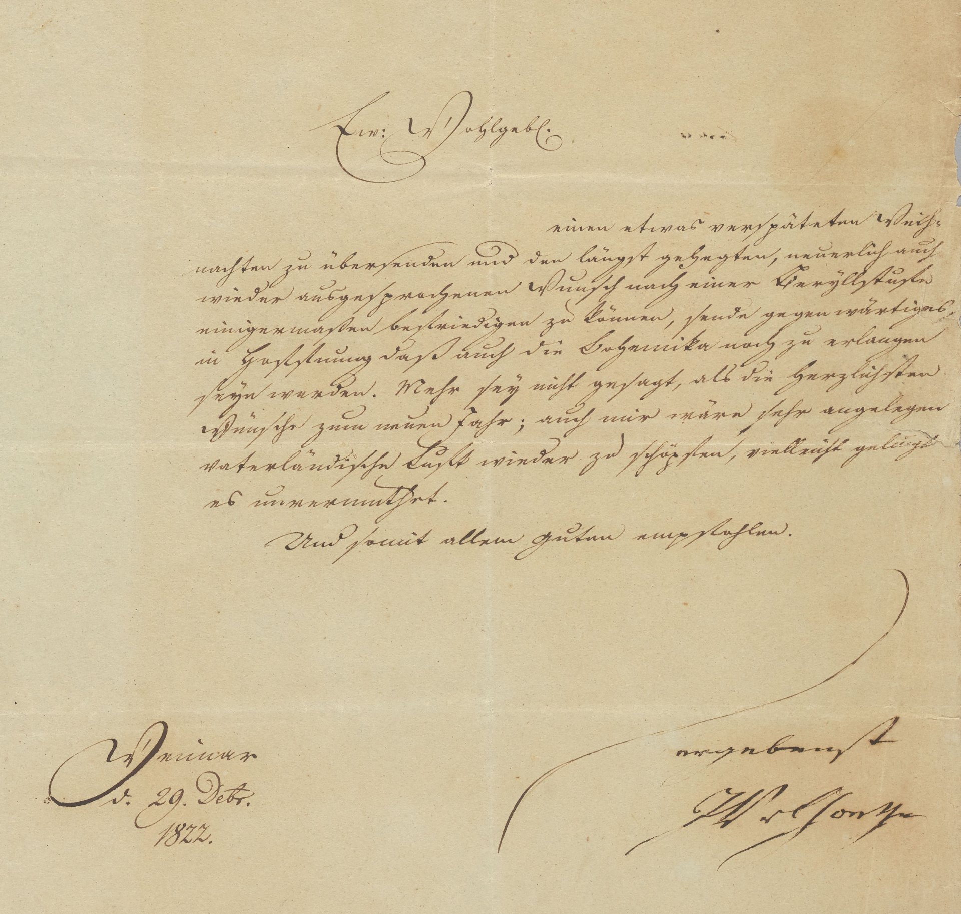 - ポータル内コンテンツのご紹介 (10)ゲーテ自署付書簡 [Letter] Weimar, 29. Dcbr. 1822