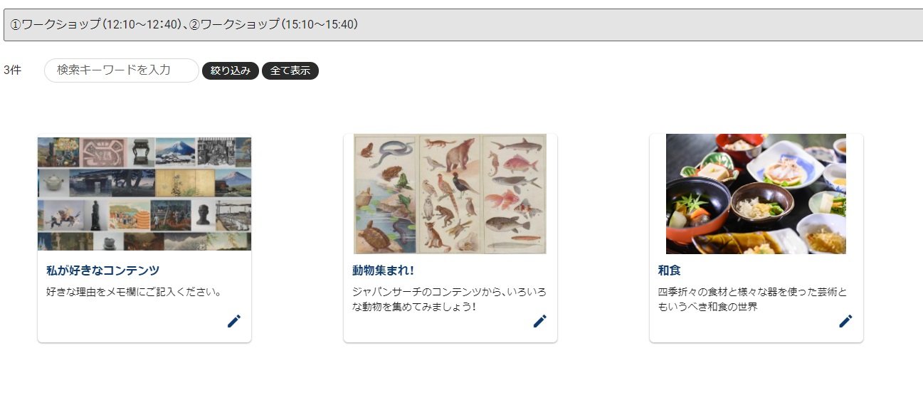 当日は、2回にわたってキュレーション機能の使い方を紹介します。教育現場でのデジタルアーカイブ活用の経験を踏まえ、ギャラリーの作り方を分かりやすく解説していただきます!