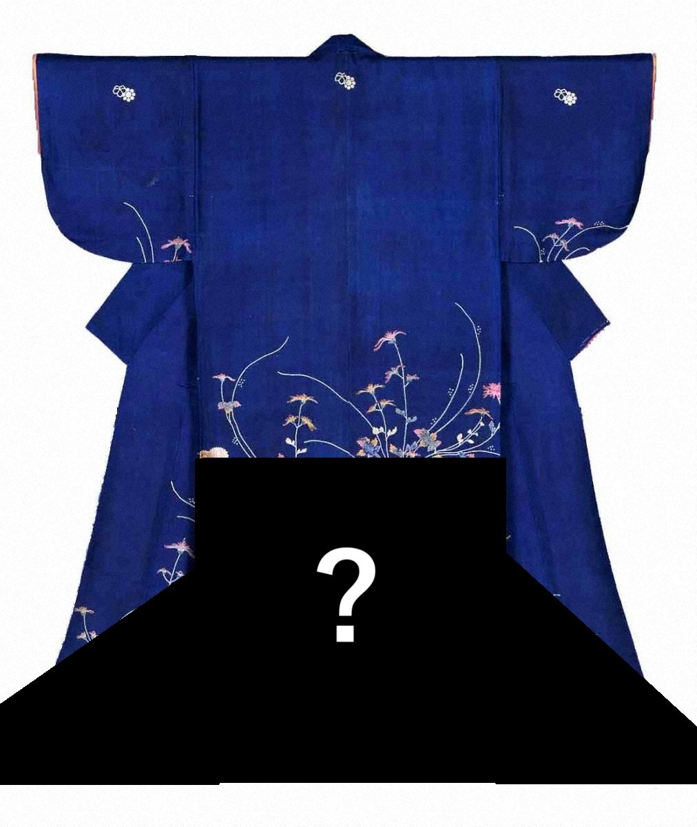 この小袖は菊と一緒にあるものが文様としてあしらわれています。それは家の中にあるものです。
