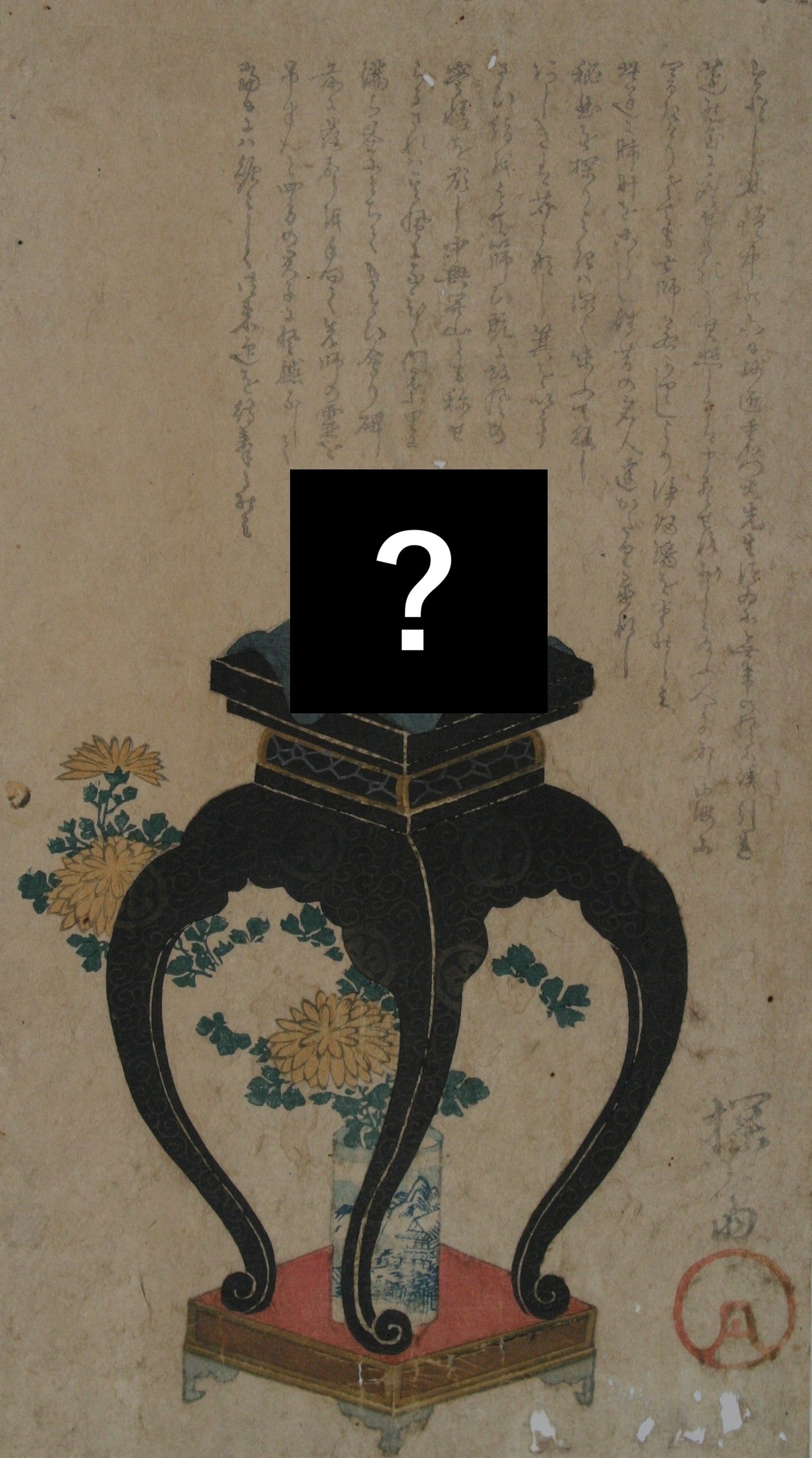 この絵の中で、菊が置かれた香台の上には、ある動物がのっています。その動物は何でしょう?