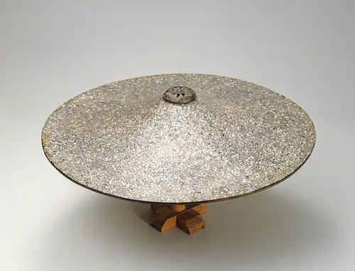 月山鍛冶は鎌倉時代初期の鬼王丸を祖とし、奥州月山の麓で鎌倉、室町期に栄えました。月山鍛冶の最大の特徴は、刀身全体に波のように流れる「綾杉肌」で、月山鍛冶の鍛えた刀身に顕著に現れることから、月山肌とも呼ばれます。江戸時代に入ると月山鍛冶の技術は細々と続きますが、松尾芭蕉の「奥の細道」に「此国の鍛冶霊水を撰びてここに潔斎して剣を打つ、終に月山と銘を切て世に賞せらる」とあるようにこの時代にも月山鍛冶の名は広く知られていました。幕末の月山貞吉もこうした鍛冶の一人でしたが、天保期に大阪へ移住し月山鍛冶の再興を果たし、大阪月山の基を開きました。その後、月山貞一(帝室技芸員)、月山貞勝、月山貞一(重要無形文化財保持者/人間国宝)の各時代に様々な苦難を乗り越えながらも、現在の月山貞利氏(奈良県無形文化財保持者)、また後継の月山貞伸氏へと連綿と続いた技術は受け継がれています。