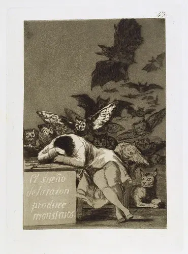 「理性に見捨てられた想像力はあり得ない怪物を生む。理性と結合すれば、想像力は諸芸術の母となりその驚異の源泉となる。」プラド美術館にある本作の素描には、以下の趣旨の注釈が加えられている。「夢を見ている作者。有害な迷信を打ち破り、この作品によって真実を永遠のものとすること。これが作者の唯一の目的である。」