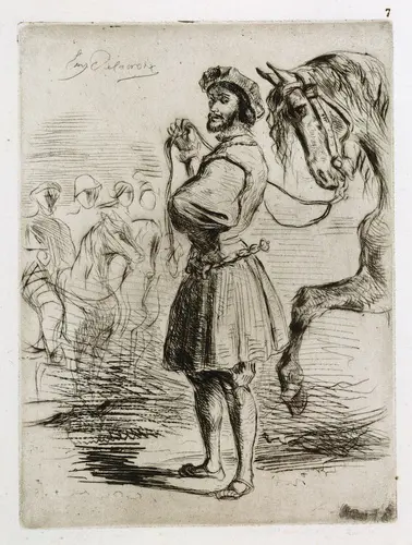 これらの銅版画は、画家の生前には未発表であったものである。ドラクロワの親しい友人で、美術史家で画家・彫版家であったフレデリック・ヴィヨ(1809-75)が原版を保存していたもので、ドラクロワの死後、1865年にこれらの6枚が1セットにまとめられて出版された。この版画集の表紙にもドラクロワの銅版画が刷り込まれている。ドラクロワはヴィヨからエッチングの手ほどきを受け、当初は二人の共同作業で版が制作されたことも多かったが、1832年以降は、ドラクロワが一人で彫版を手がけるようになった。