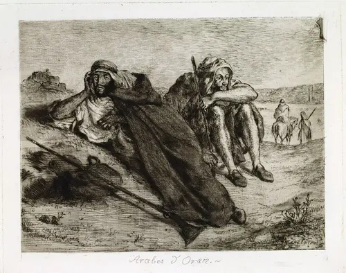 本作の構図は、ドラクロワが北アフリカの旅を終える直前の1832年6月20日に、タンジールからアルジェに海路戻る途中に寄港した西アルジェリアの港町オランの市壁の外側で描いた水彩素描がもとになっている。この水彩素描をもとにした作品は、他にも複数制作されており、1835年のサロンに出品された油彩画(1834、東京富士美術館)や、ドラクロワがモルネー伯爵に贈った水彩ヴァージョン(1837)などが知られる。また本作のためと思われる鉛筆の習作も知られている(ウィーン、アルベルティーナ)。