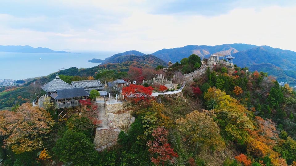 白滝山は、「しまなみ海道」で尾道から2番目に渡る因島の標高226メートルの山である。山頂から瀬戸内海のパノラマが楽しめる景勝地だが、大昔は山岳信仰の僧の修行場だったと伝わる。 1569年、因島村上家が本州の三原に向き合う位置に青木城を築いた際、白滝山を要害とし、観音堂を建立した。「五百羅漢像」は実際には大小700体。眺望の良い白滝山山頂に清浄世界を現出させるためにこの地の豪商が刻んだもの。