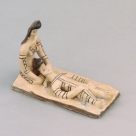 浮世絵の一つに「疱瘡絵」と称されるものがある。疱瘡絵はかなり特殊な浮世絵である。疱瘡(天然痘)にかかった病人への見舞い品として贈られたり、病人の部屋に貼られるという用途に限って用いられた浮世絵である。また、疱瘡絵は、全面、濃淡二種の赤色のみで摺刷されているという、際立った特徴を持つ。(人間文化研究機構)
