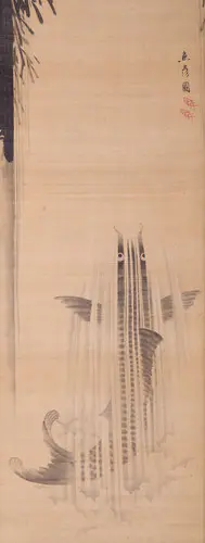 / 滝たき夏の暑い日は滝に打たれるのも悪くない、そんな気分になる人もいるかもしれません。ここでは「滝」の絵をたくさん集めてみました。SNSでシェアノートに追加滝を見て涼しい気分に浸りましょう。東都名所 王子滝の川 広重,佐野喜 SNSでシェアノートに追加諸國瀧迴リ・木曽海道小野ノ瀑布 葛飾北斎筆,By Katsushika Hokusai (1760–1849),東京国立博物館,Tokyo National Museum SNSでシェアノートに追加諸國瀧廻リ・美濃ノ国養老の滝 葛飾北斎筆,By Katsushika Hokusai (1760–1849),東京国立博物館,Tokyo National Museum SNSでシェアノートに追加瀧小禽図屏風 伝 狩野永徳,Attributed to Kano Eitoku (1543-1590) 山深い滝の周囲を小鳥が数羽舞い遊ぶ様子が、墨の濃淡のみで巧みに描かれ、余白の部分に金泥がうすく用いられて華やかさを添えている。滝を中心として崖の上の松、滝壺やその近くの竹、土坡などを画面左手に集中させ、画面右手は大きく空間をとる。飛び交う小鳥の軽やかさとは対照的に、水しぶきを上げてダイナミックに落下する滝の姿は壮観で、桃山絵画の豪壮さとともに清涼感を感じさせる気品にあふれている。SNSでシェアノートに追加諸國瀧廻リ・下野黒髪山きりふりの滝 葛飾北斎筆,By Katsushika Hokusai (1760-1849),東京国立博物館,Tokyo National Museum <p>「諸国瀧巡り」は各地の名瀑を題材とした8枚揃いのシリーズで、名所絵というよりも流れ落ちる水のさまざまな表情を描き分けることに主眼が置かれている。「霧降の滝」は、日光三名瀑とされ、段になった岩にあたって霧を吹き上げて落ちるところから命名された。<br /></p>SNSでシェアノートに追加諸國瀧廻り・和州吉野義経馬洗滝 葛飾北斎筆,By Katsushika Hokusai (1760-1849),東京国立博物館,Tokyo National Museum SNSでシェアノートに追加日光山名所之内・裏見ヶ滝 渓斎英泉筆,By Keisai Eisen (1791–1848),東京国立博物館,Tokyo National Museum SNSでシェアノートに追加春秋の滝 菱田春草,Hishida Shunso 左右を隔て、各々岩を伝って落ちる一条の滝を中心に、右幅に咲き誇る桜、左幅に散りゆく楓を配し、水煙けむる春秋の風情を描き分けている。さらに二筋の滝の流れは下方へ溶けこむかのように飲み込まれ、画面外に広がる空間をも予感させる巧みな効果がみられる。滝の流れに輪郭線は見られず、ここには「朦朧体」と揶揄された没線描法の成果が見られる。ただし桜や楓の明快な色彩表現や岩肌のブロックのような幾何学的な描写は、この頃春草が取り組んでいた脱没線描法の試みを示す。同年に描かれた《紅葉山水》(永青文庫蔵)にも同様の試みがなされている。春草が明治41年(1908)に眼病を発病した後、一時小康状態を取り戻した束の間の期間に描かれた最晩年の佳品といえよう。SNSでシェアノートに追加名所江戸百景 王子不動之滝 広重 SNSでシェアノートに追加諸国名所百景 紀州那智山大滝 広重,魚栄 SNSでシェアノートに追加六十余州名所図会 美濃 養老ノ滝 広重,越平 SNSでシェアノートに追加新形三十六怪撰 節婦の霊滝に掛る図 芳年,松木平吉 SNSでシェアノートに追加鯉、滝を登る!瀧鯉図 SNSでシェアノートに追加鯉登滝図 SNSでシェアノートに追加「渓斎鯉の滝登り」 SNSでシェアノートに追加鯉の滝登り SNSでシェアノートに追加豪華な着物ですね。おやここでも鯉が滝を登っています。中国の昔話によると、中国の黄河という大きな川にある竜門という滝を登りきった鯉は、龍になることができるとされています。ここから「鯉の滝登り」は立身出世を意味するようになりました。皆さんもよく耳にする「登竜門」という言葉も実はこのお話に由来しています。花魁道中─鯉の滝のぼり打掛
