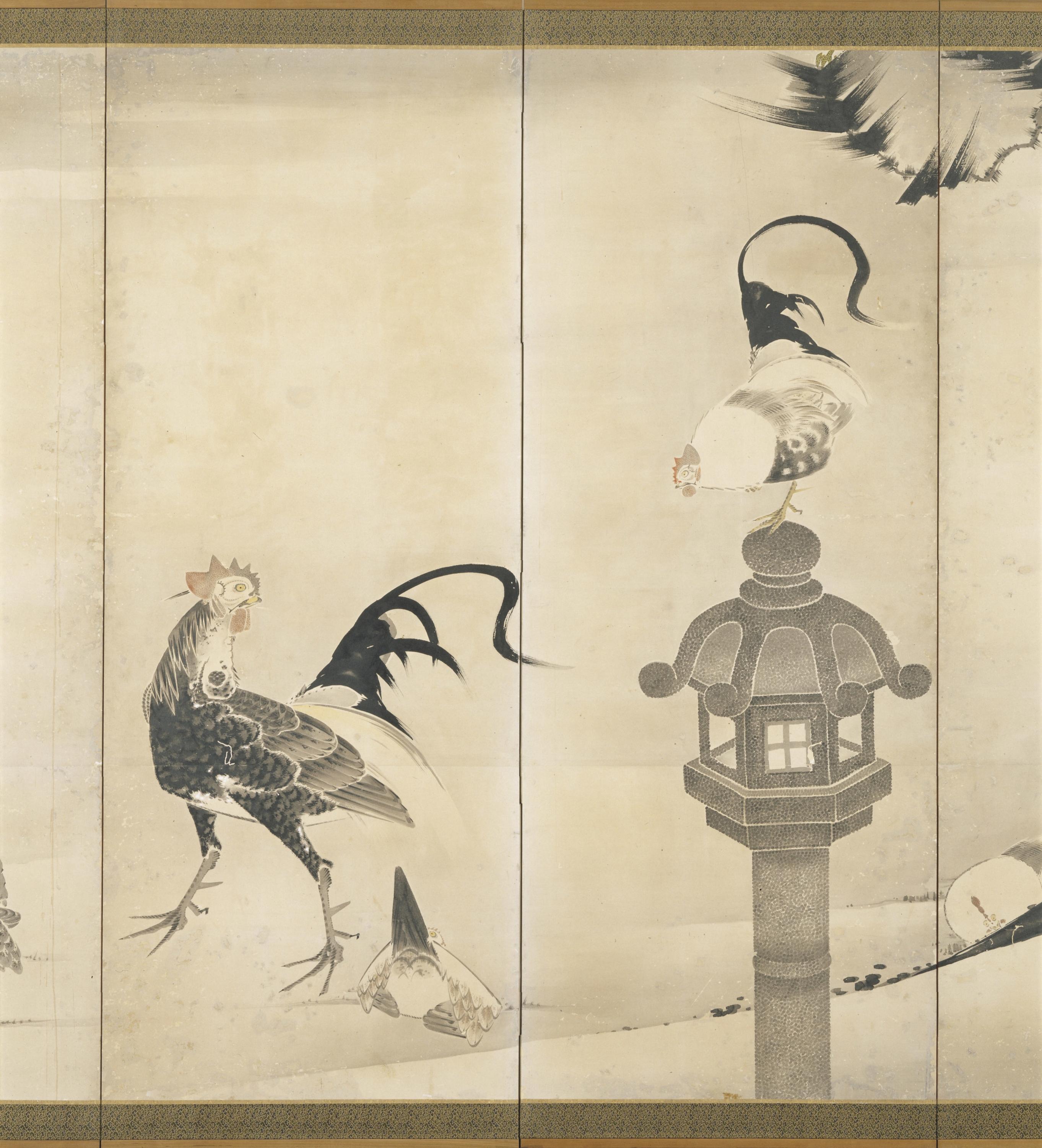 / 奇想の絵師(教育・商用利用可)きそうのえし江戸時代中期に京都で活躍した、個性的で奇抜な画風で知られる三人の絵師SNSでシェアノートに追加目次伊藤若冲長沢芦雪曽我蕭白 伊藤若冲若冲は狩野派に学んだが、写実画において独自の境地をひらいた。すぐれた観察眼により動植物とりわけ鶏を題材にした、緻密な描写の作品を数多く遺している。象図 / 松梅群鶏図屏風 / 果蔬涅槃図 / 玄圃瑤華のうち薊・粟 / 玄圃瑤華のうち玉蜀黍・葵鬘 / 玄圃瑤華のうち紫陽花・冬葵 / 長沢芦雪芦雪は円山応挙の高弟として、写生画の流れを汲みながらも、大胆な構図の個性的な画風を展開した。南紀に滞在した際に多くの障壁画を描き、串本の無量寺の「竜虎図襖」などが代表作とされる。南天に雪兎図 / 薔薇蝶狗子図 花鳥図 / 双僊図 呉美人図 / 寒山拾得図屏風 / 曽我蕭白出自に謎の多い絵師で、自身を曽我蛇足の系譜を継ぐ「蛇足十世」としている。極端に形をデフォルメした奇妙な画風が特徴で、中国の仙人を描いた「群仙図屏風」が代表作とされる。鐘馗図(鬼神) / 南泉斬猫図 / 蝦蟇仙人図 / 亀寿老図(亀仙人) / 蝦蟇鉄拐図屏風 / 山水図 参考文献奇想の系譜 辻惟雄 著,小学館ndl/ 奇想の系譜 辻惟雄 著,筑摩書房ndl/