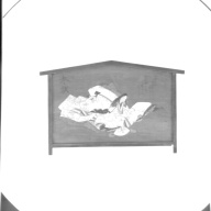 「卒塔婆小町」は小野小町の老後を描いた謡曲。近江国関寺の僧が七夕の日に、稚児を伴って、近くに住む老女の所に和歌の話を聞きに行く。老女の和歌の物語から老女こそが小野小町の零落した姿であると分かる。関寺の七夕祭に招かれた小町は稚児の舞にさそわれて舞い、明方に庵に帰る。絵に描かれているのは小野小町(シテ)が作り物の藁屋の中で歌を詠む姿。