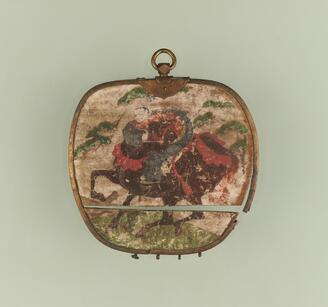 <p>韃靼(ダッタン)とは蒙古を意味している(『和漢三才図会』)。本図は韃靼人が野馬を捕獲する場面を画くものだが、普通には、小動物を狩猟する有様が画かれる。武家の御用絵師たる狩野派得意の画題である。</p>