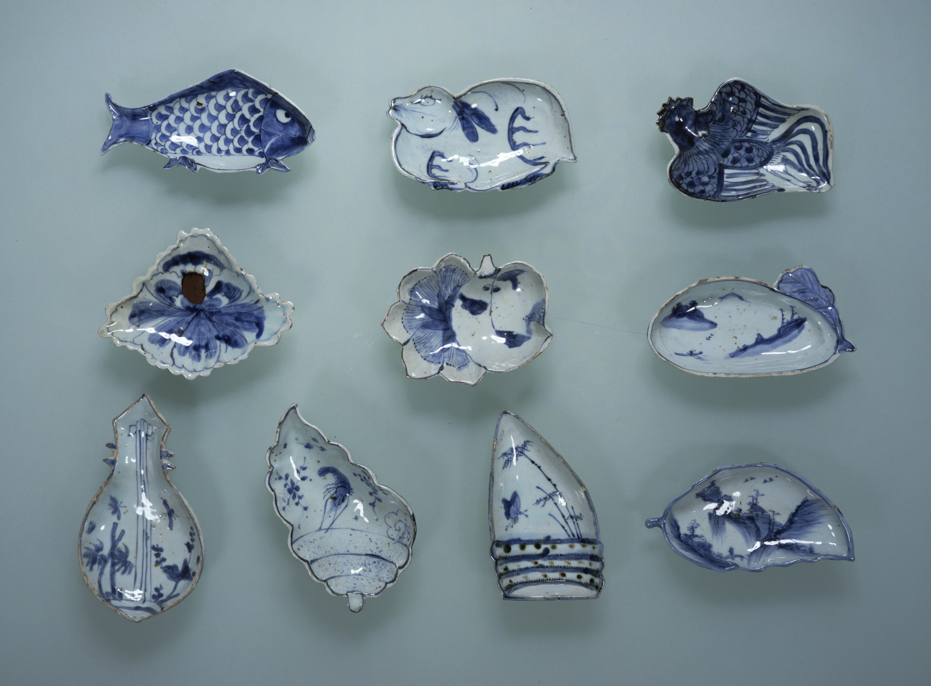「染付」とは、白色の素地に酸化コバルトを主成分とする顔料で文様を描き、ガラス質の透明釉をかけて焼成した陶磁器。顔料を強力な還元炎で焼成することで、コバルトブルーに発色させる。イスラム圏からもたらされたコバルトを用いて、中国の元時代の景徳鎮窯において完成され、その技法はアジア各地に広まった。ここでは、中国・ベトナム・朝鮮・日本各国の染付を紹介する。