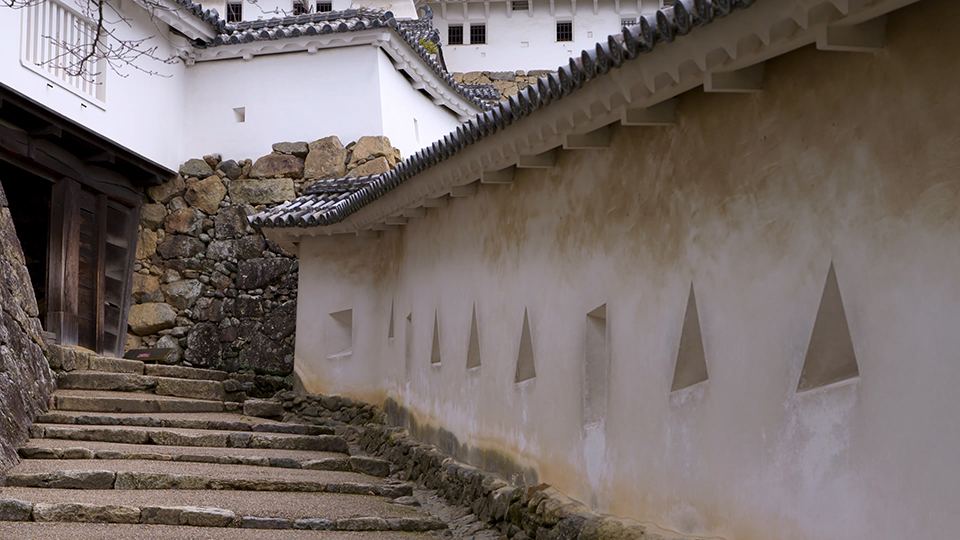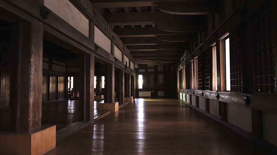 天守は、戦闘的姿を残しており、籠城戦に備えた「流し台」や「雪隠(せっちん=トイレ)」が設けられている。窓側の移動を容易にする「石打棚」、鉄砲掛けは天守全体で605挺分を数え、銃使用による煙抜きの高窓も129カ所に配されていた。