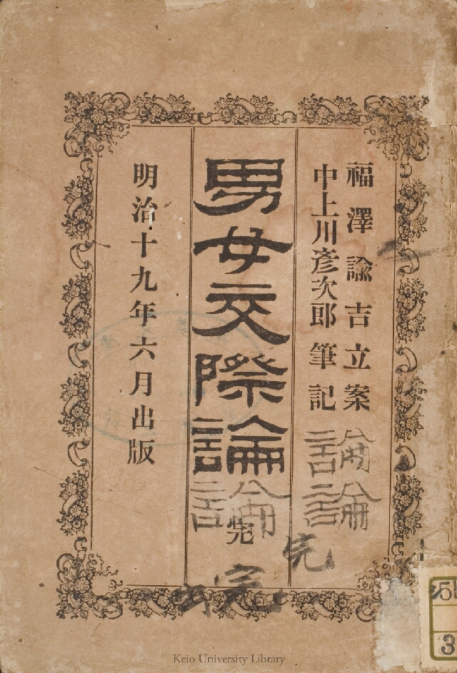 明治19年(1886)5月26日から6月3日まで8回にわたり「時事新報」社説として発表され、同月単行本として刊行された。「日本婦人論」「品行論」の論緒を発展させたもので、日本古来の風習において、交際は男子の専らにするばかりで、婦人の間に交際の見るべきものなく、男女間の交際に至ってはこれを禁ずるかの如き風のあるのを批判し、今後の文明社会においては男女間対等の交際を盛んにすべきであるとの趣旨を述べたもの。