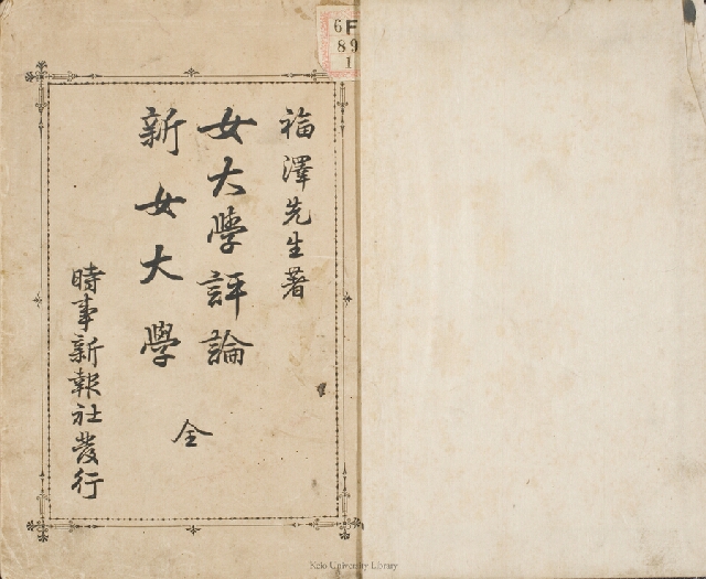 明治32年(1899)4月1日から7月23日まで34回にわたり「時事新報」紙上に発表され、同年11月菊判洋紙活字版の単行本として刊行された。貝原益軒の「女大学」の各条項を批判し、あわせて自己の立場からの「新女大学」を書いたもの。