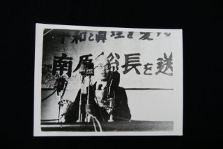 昭和24(1949)年撮影 東京大学文書館蔵 昭和24(1949)年安田講堂での総長演述の写真。この写真は南原の演述集をまとめた『南原繁著作集 第7巻』(資料15)の巻頭にも使われている。