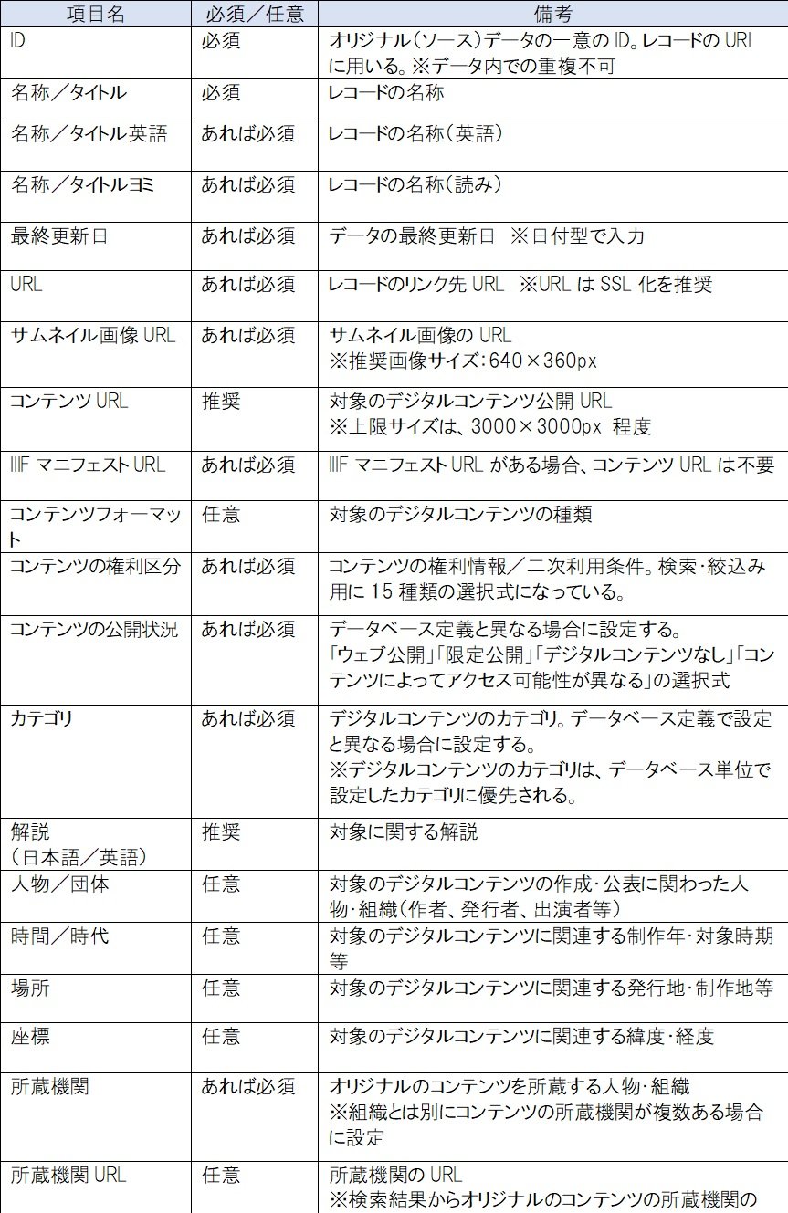 デジタルアーカイブ「活用のための基盤整備」においては、自らが公開するデジタルコンテンツをより一層活用しやすくすることが求められます。サムネイルやコンテンツのURLをメタデータの一部に含めたり、デジタルコンテンツの利用条件を整備し、可能な限り、自由に二次利用が可能なオープンな条件を設定したりする取組が考えられます。さらに、海外での活用を想定して、メタデータの一部(タイトル・解説)だけでも英語化に取り組むことが重要です。