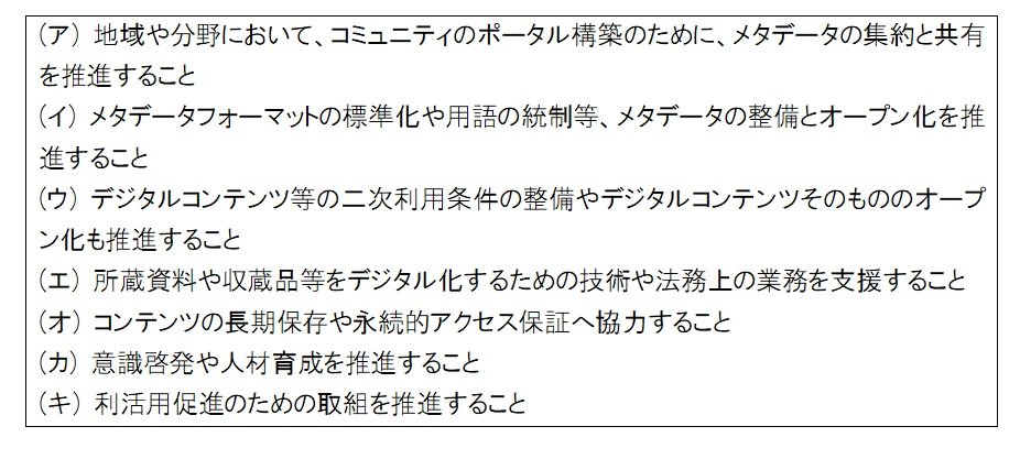 - 「3か年総括報告書 我が国が目指すデジタルアーカイブ社会の実現に向けて」(令和2年8月)デジタルアーカイブジャパン推進委員会・実務者検討委員会が発足後3か年の活動を振り返ってまとめた報告書