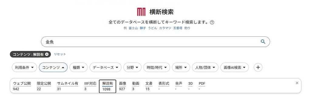 横断検索において、解説が付いている資料だけに絞り込めるファセットを追加しました。