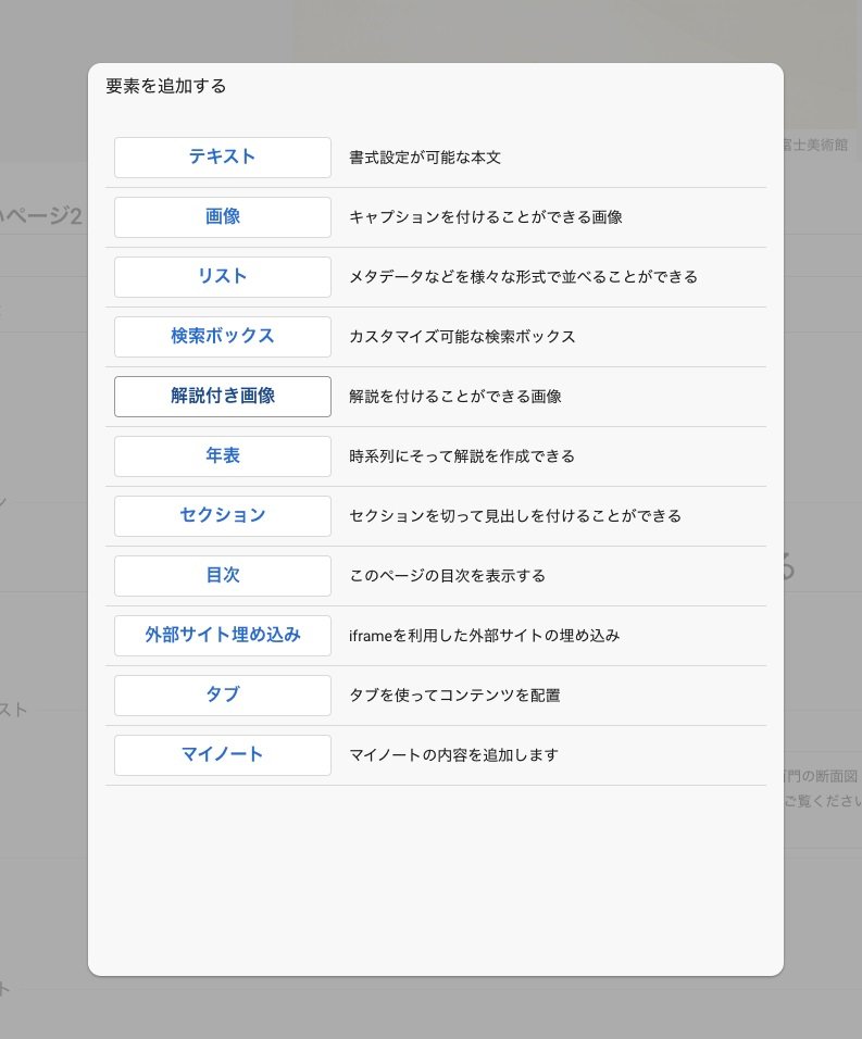 ジャパンサーチでは、オリジナルのギャラリーを作ることができます。ギャラリーの解説付き画像パーツでは、IIIFを使用しています。ジャパンサーチのマイギャラリーから任意のギャラリーを作成し「解説付き画像」を選んでみましょう。