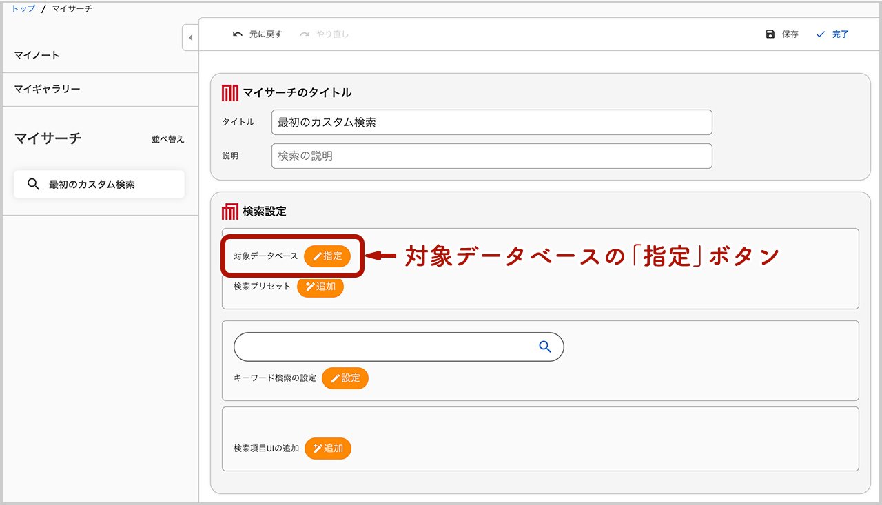 まずは設定項目「対象データベース」で、検索したいアイテムを含むデータベースを検索対象に指定します。